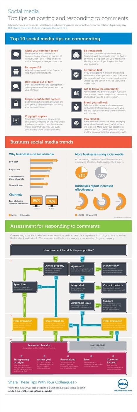 With that in mind,?Dell has developed this handy Infographic for small to medium-size businesses to help their employees assess how to comment and respond effectively on behalf of their company, whether this is on a blog post, a tweet, a Facebook wall post, or anywhere else.
